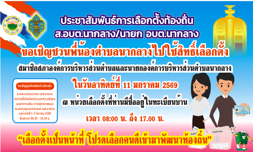 ประชาสัมพันธ์การเลือกตั้งท้องถิ่น ส.อบต.นากลาง/นายก อบต.นากลาง |