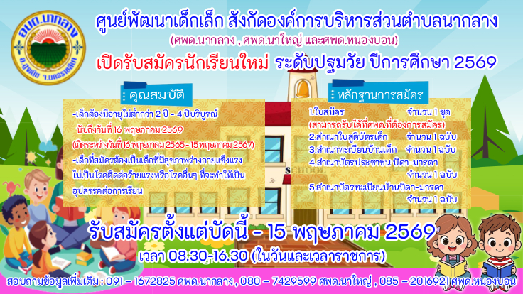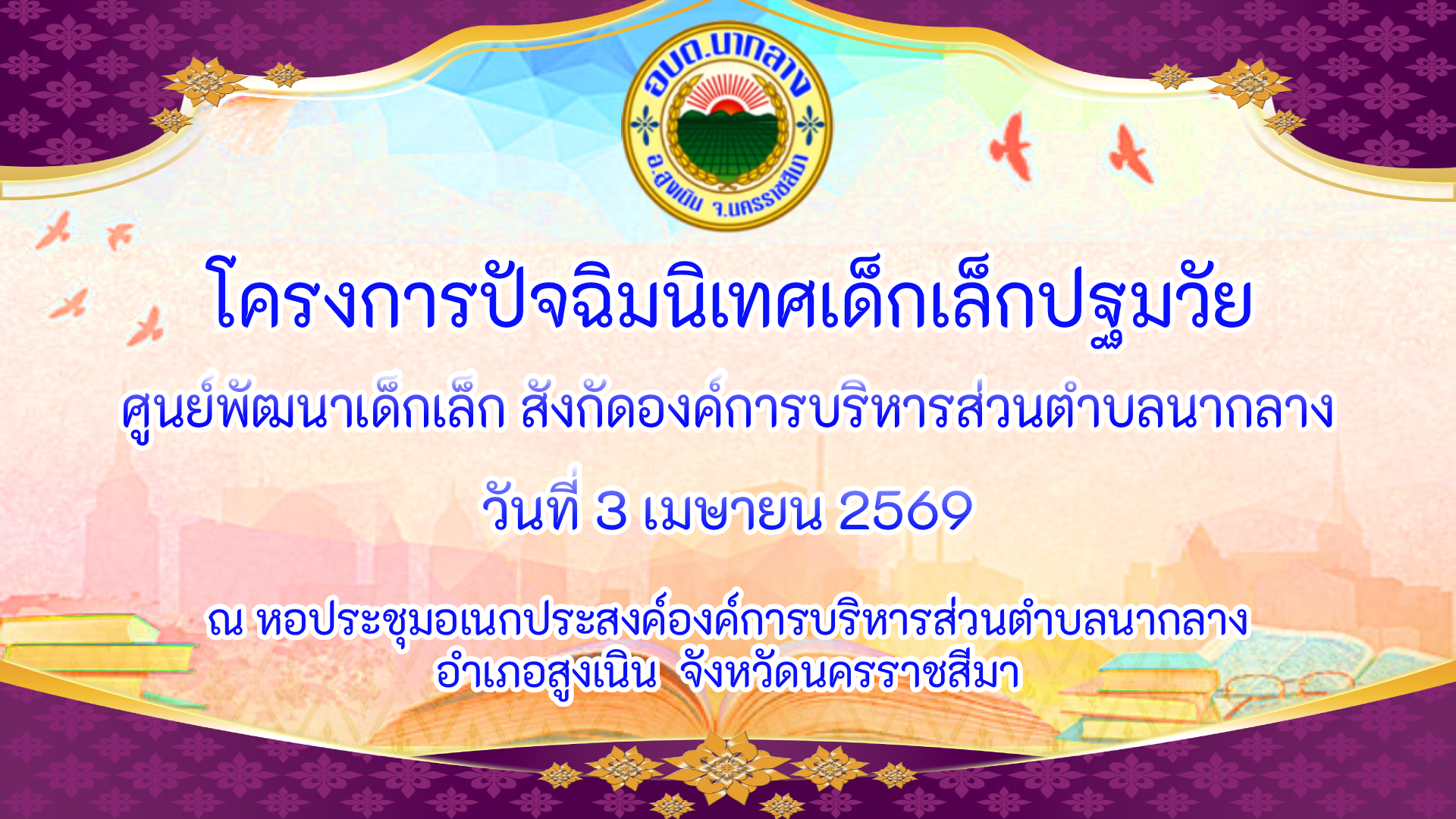 ขอเชิญเข้าร่วมโครงการปัจฉิมนิเทศเด็กเล็กปฐมวัย ศูนย์พัฒนาเด็กเล็กสังกัดองค์การบริหารส่วนตำบลนากลาง ประจำปีการศึกษา 2568